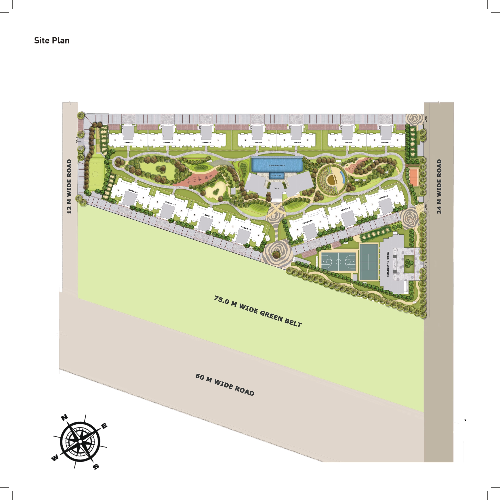 Clubhouse with swimming pool to be provided with his/ her change rooms, well equipped Gym, Indoor & Outdoor games areas, Multi-purpose Hall and Jogging track